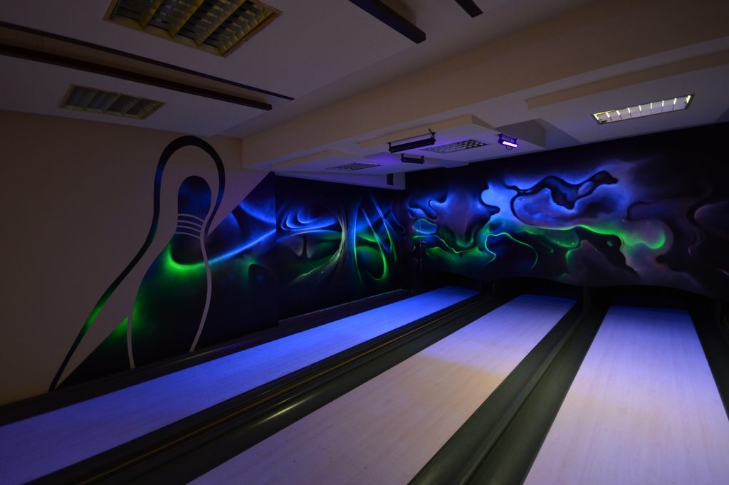 Transparentne farby UV sprawiają, że w dzień ściana wygląda zupełnie neutralnie, a po zapaleniu światła UV ukazują się ukryte wcześniej motywy. To efekt „wow”, który szczególnie doceni młodsze pokolenie szukające oryginalnych przestrzeni do robienia zdjęć.